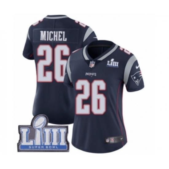 >Women's Nike New England Patriots #26 Sony Michel Navy Blue Team Color Vapor Untouchable Limited Player Super Bowl LIII Bound NFL Jersey