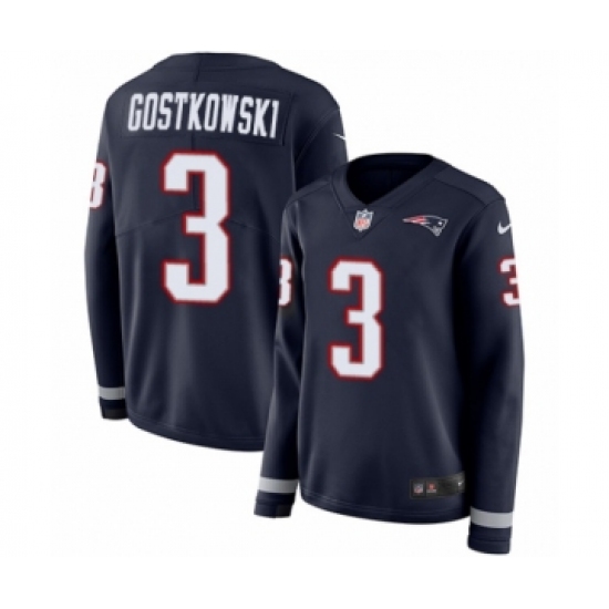 >Women's Nike New England Patriots #3 Stephen Gostkowski Limited Navy Blue Therma Long Sleeve NFL Jersey