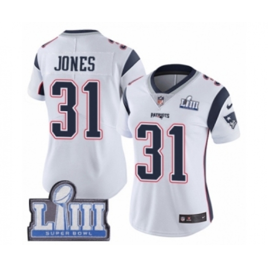 Women's Nike New England Patriots #31 Jonathan Jones White Vapor Untouchable Limited Player Super Bowl LIII Bound NFL Jersey