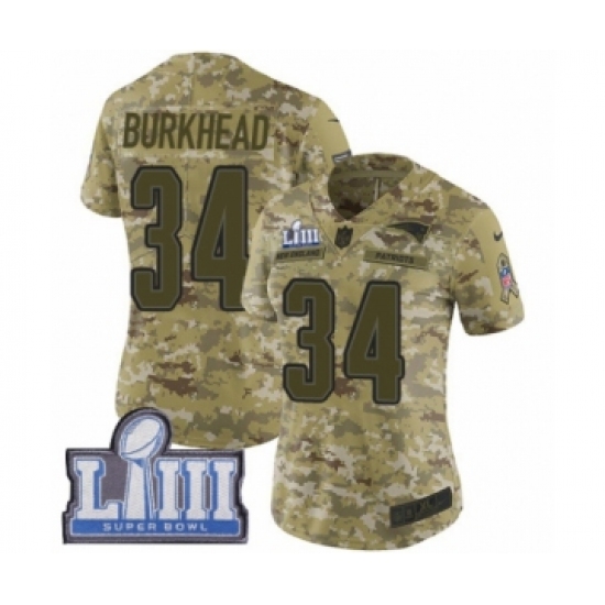 >Women's Nike New England Patriots #34 Rex Burkhead Limited Camo 2018 Salute to Service Super Bowl LIII Bound NFL Jersey