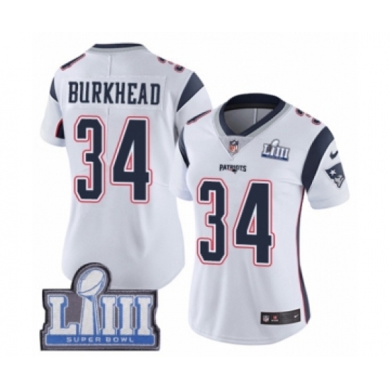 >Women's Nike New England Patriots #34 Rex Burkhead White Vapor Untouchable Limited Player Super Bowl LIII Bound NFL Jersey