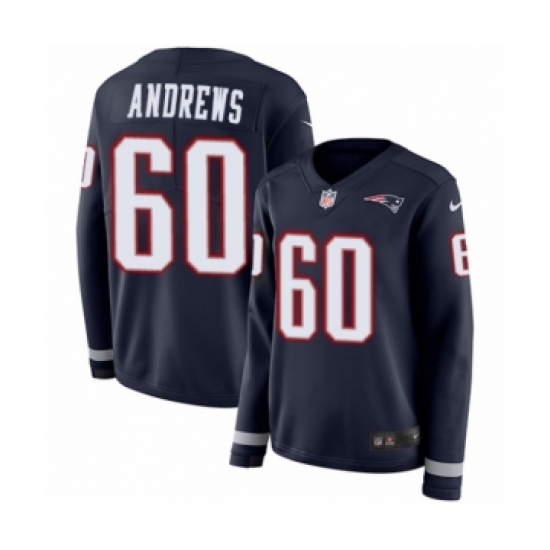 >Women's Nike New England Patriots #60 David Andrews Limited Navy Blue Therma Long Sleeve NFL Jersey