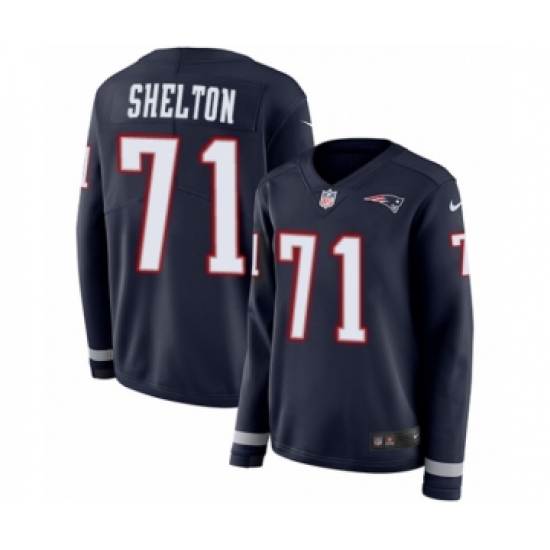 >Women's Nike New England Patriots #71 Danny Shelton Limited Navy Blue Therma Long Sleeve NFL Jersey