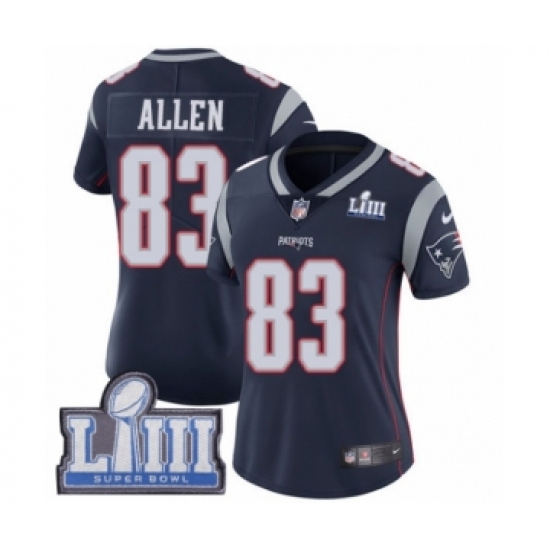 >Women's Nike New England Patriots #83 Dwayne Allen Navy Blue Team Color Vapor Untouchable Limited Player Super Bowl LIII Bound NFL Jersey
