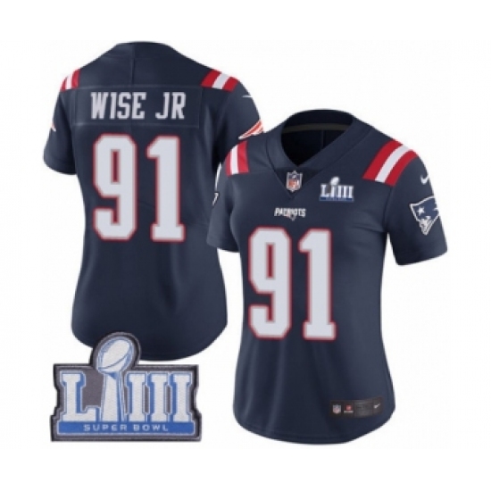 Women's Nike New England Patriots #91 Deatrich Wise Jr Limited Navy Blue Rush Vapor Untouchable Super Bowl LIII Bound NFL Jersey