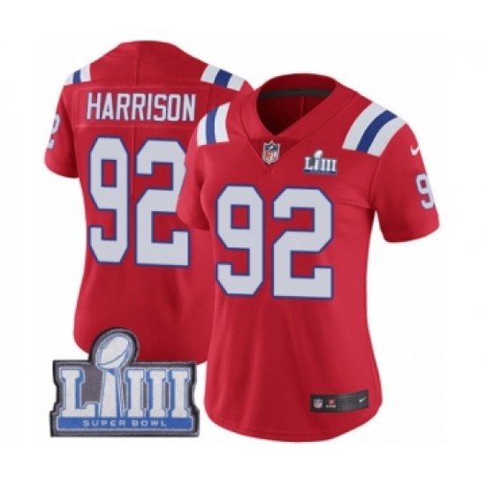 Women's Nike New England Patriots #92 James Harrison Red Alternate Vapor Untouchable Limited Player Super Bowl LIII Bound NFL Jersey