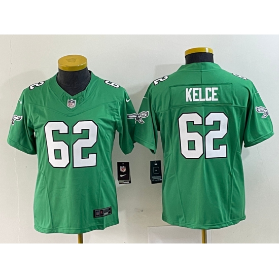 Women's Nike Philadelphia Eagles #62 Jason Kelce Green 2023 F.U.S.E. Vapor Limited Throwback Stitched Football Jersey