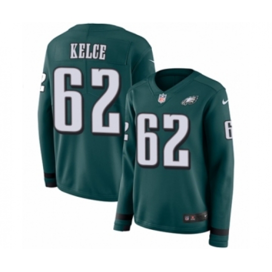 >Women's Nike Philadelphia Eagles #62 Jason Kelce Limited Green Therma Long Sleeve NFL Jersey