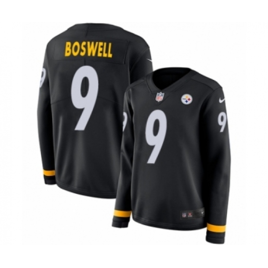 >Women's Nike Pittsburgh Steelers #9 Chris Boswell Limited Black Therma Long Sleeve NFL Jersey
