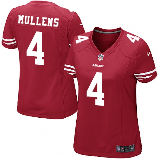 >Women's Nike San Francisco 49ers #4 Nick Mullens Game Red Team Color NFL Jersey