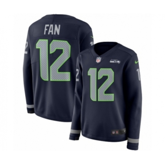 Women's Nike Seattle Seahawks 12th Fan Limited Navy Blue Therma Long Sleeve NFL Jersey
