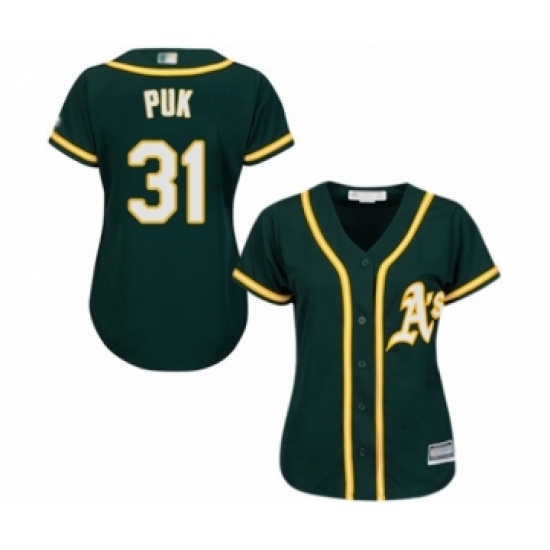 >Women's Oakland Athletics #31 A.J. Puk Authentic Green Alternate 1 Cool Base Baseball Player Jersey