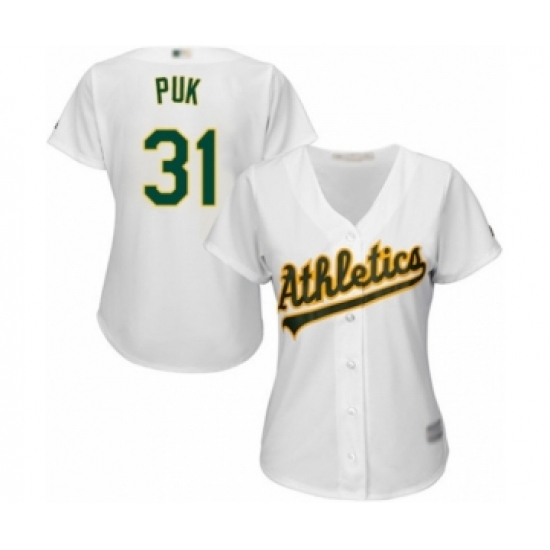 Women's Oakland Athletics #31 A.J. Puk Authentic White Home Cool Base Baseball Player Jersey