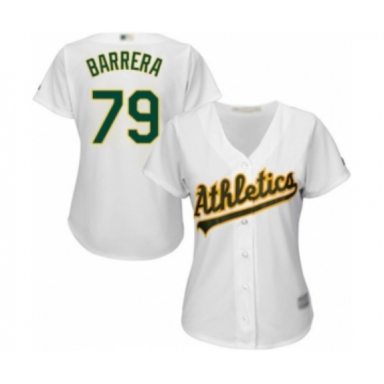 Women's Oakland Athletics #79 Luis Barrera Authentic White Home Cool Base Baseball Player Jersey