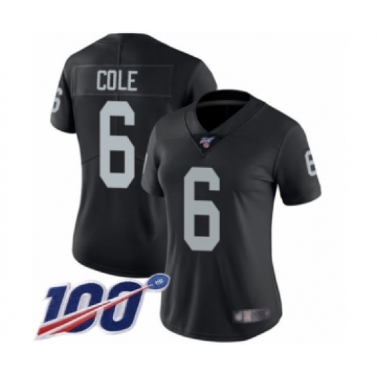 Women's Oakland Raiders #6 A.J. Cole Black Team Color Vapor Untouchable Limited Player 100th Season Football Jersey
