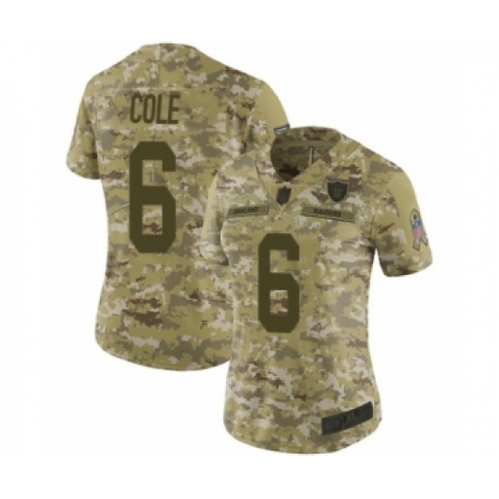 >Women's Oakland Raiders #6 A.J. Cole Limited Camo 2018 Salute to Service Football Jersey