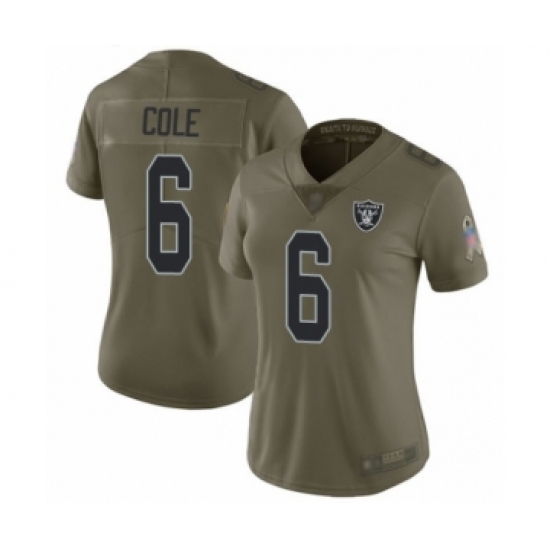 Women's Oakland Raiders #6 A.J. Cole Limited Olive 2017 Salute to Service Football Jersey