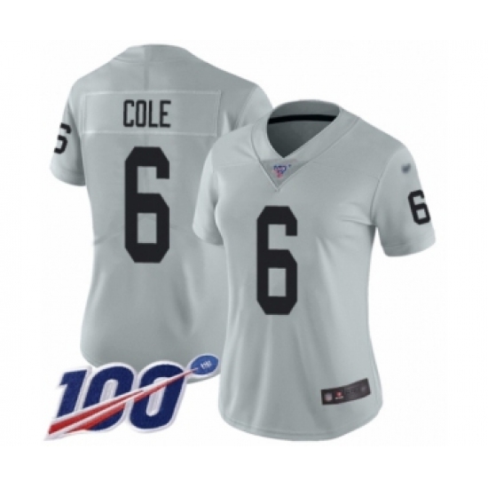 >Women's Oakland Raiders #6 A.J. Cole Limited Silver Inverted Legend 100th Season Football Jersey