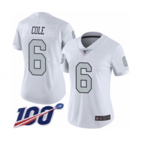 >Women's Oakland Raiders #6 A.J. Cole Limited White Rush Vapor Untouchable 100th Season Football Jersey