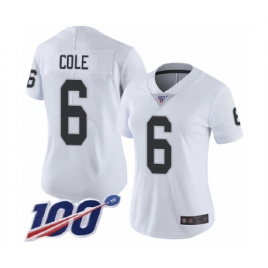 Women's Oakland Raiders #6 A.J. Cole White Vapor Untouchable Limited Player 100th Season Football Jersey