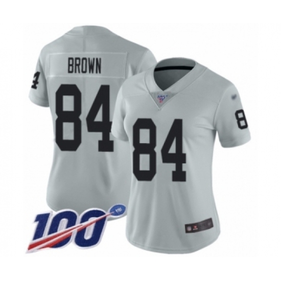 >Women's Oakland Raiders #84 Antonio Brown Limited Silver Inverted Legend 100th Season Football Jersey