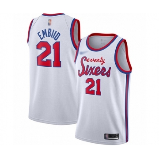 >Women's Philadelphia 76ers #21 Joel Embiid Swingman White Hardwood Classics Basketball Jersey