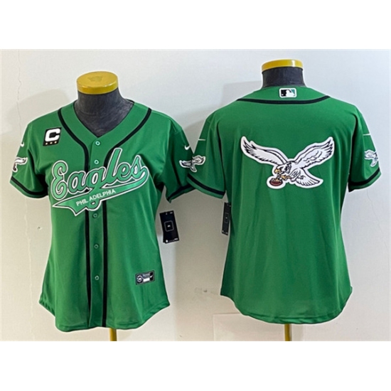Women's Philadelphia Eagles Green Team Big Logo With 3-Star C Cool Base Stitched Baseball Jerseys
