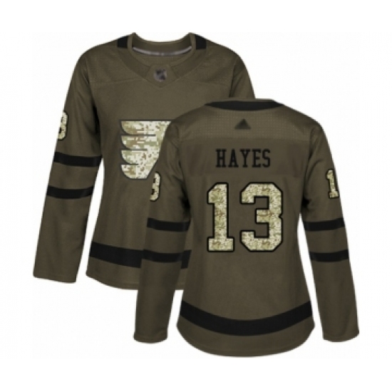 >Women's Philadelphia Flyers #13 Kevin Hayes Authentic Green Salute to Service Hockey Jersey