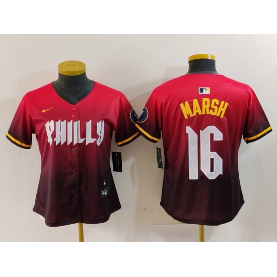 Women's Philadelphia Phillies #16 Brandon Marsh Red 2024 City Connect Limited Jersey