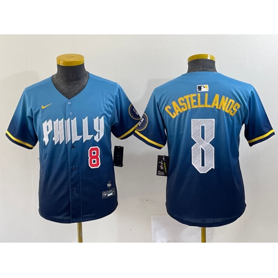 Youth Philadelphia Phillies #8 Nick Castellanos Blue 2024 City Connect Limited Stitched Jersey