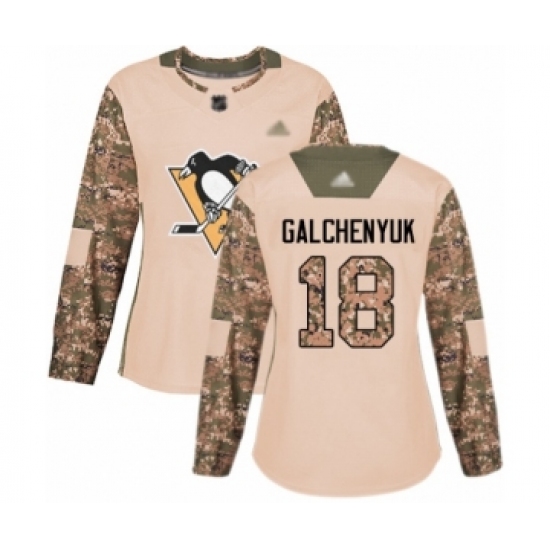 >Women's Pittsburgh Penguins #18 Alex Galchenyuk Authentic Camo Veterans Day Practice Hockey Jersey