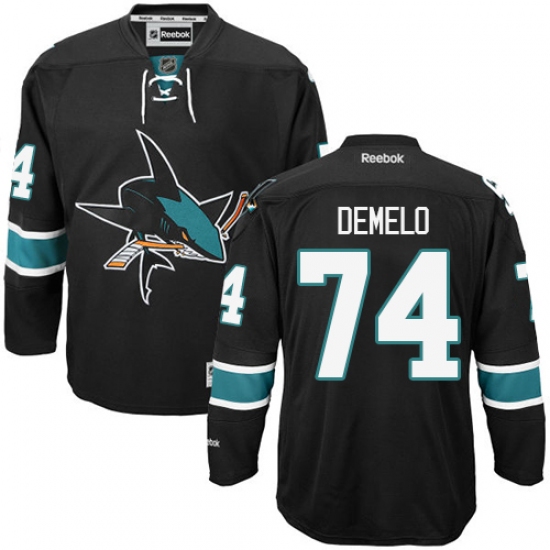 Home>NHL>San Jose Sharks>Dylan DeMelo>Women's Reebok San Jose Sharks #74 Dylan DeMelo Premier Black Third NHL Jersey