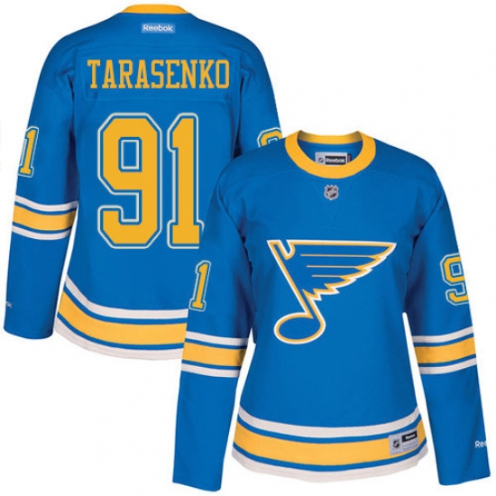 Home>NHL>St. Louis Blues>Vladimir Tarasenko>Women's Reebok St. Louis Blues #91 Vladimir Tarasenko Premier Blue 2017 Winter Classic NHL Jersey