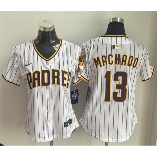 Women's San Diego Padres #13 Manny Machado White Home Limited Stitched Baseball Jersey(Run Small)