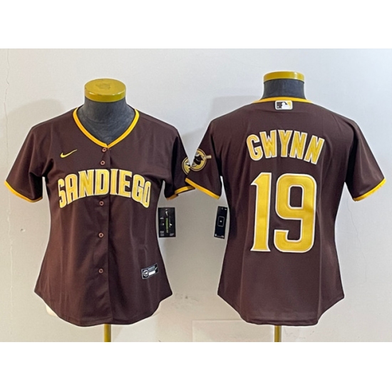 Women's San Diego Padres #19 Tony Gwynn Brown Stitched Baseball Jersey(Run Small)