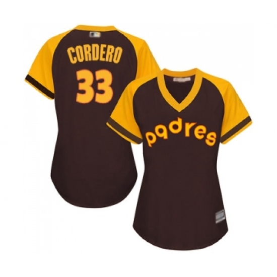 Women's San Diego Padres #33 Franchy Cordero Replica Brown Alternate Cooperstown Cool Base Baseball Jersey