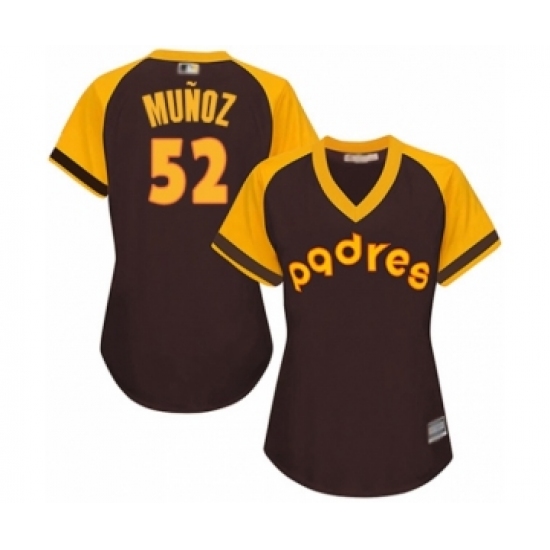 >Women's San Diego Padres #52 Andres Munoz Authentic Brown Alternate Cooperstown Cool Base Baseball Player Jersey