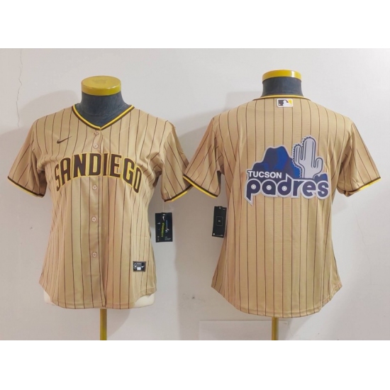>Women's San Diego Padres Tan Team Big Logo Stitched Baseball Jersey(Run Small)