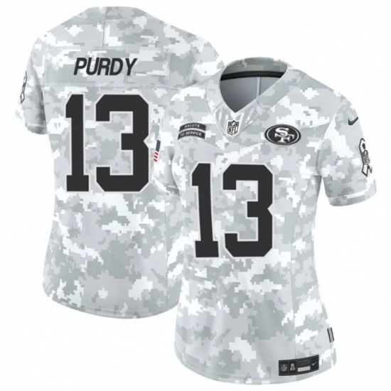 >Women's San Francisco 49ers #13 Brock Purdy 2024 F.U.S.E Arctic Camo Salute To Service Limited Stitched Jersey(Run Small)