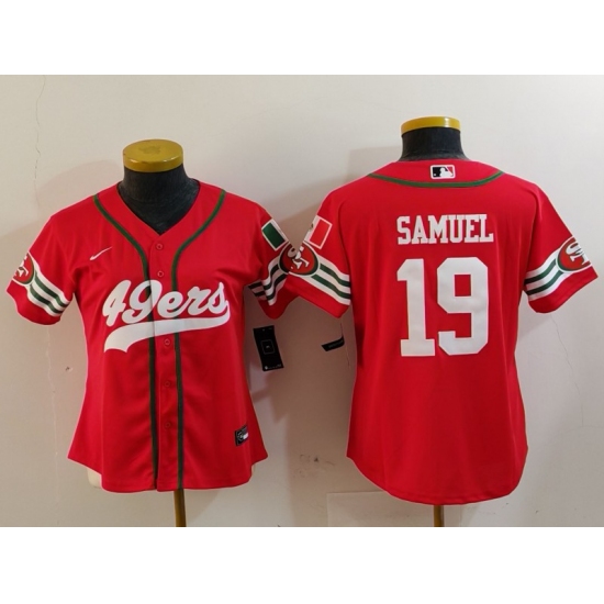 >Women's San Francisco 49ers #19 Deebo Samuel Red Mexico Cool Base Stitched Baseball Jersey