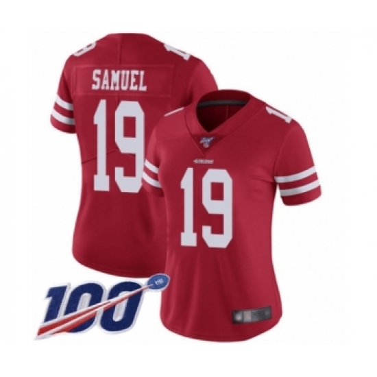 Women's San Francisco 49ers #19 Deebo Samuel Red Team Color Vapor Untouchable Limited Player 100th Season Football Jersey