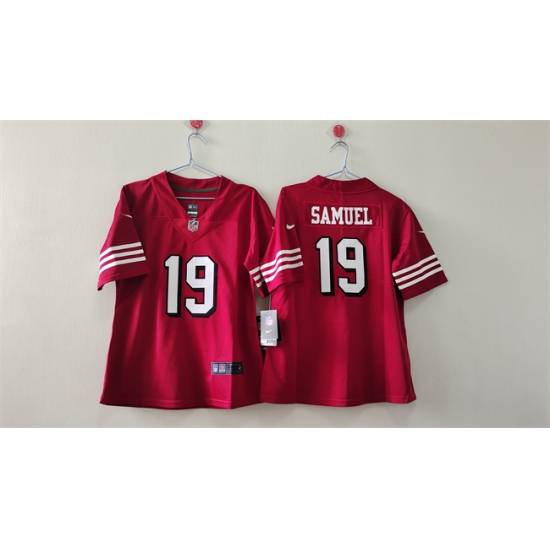 >Women's San Francisco 49ers #19 Deebo Samuel Red Vapor Alternate Football Stitched Jersey(Run Small)