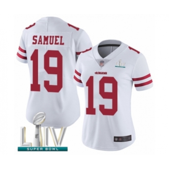 >Women's San Francisco 49ers #19 Deebo Samuel White Vapor Untouchable Limited Player Super Bowl LIV Bound Football Jersey