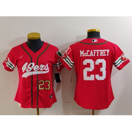 Women's San Francisco 49ers #23 Christian McCaffrey Red Mexico Cool Base Stitched Baseball Jersey