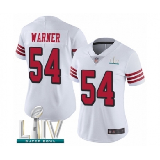 >Women's San Francisco 49ers #54 Fred Warner Limited White Rush Vapor Untouchable Super Bowl LIV Bound Football Jersey
