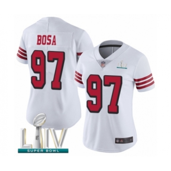 Women's San Francisco 49ers #97 Nick Bosa Limited White Rush Vapor Untouchable Super Bowl LIV Bound Football Jersey