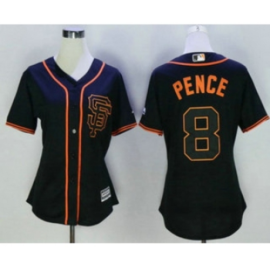 Women's San Francisco Giants #8 Hunter Pence Black SF Cool Base Baseball Jersey