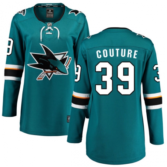 Home>NHL>San Jose Sharks>Logan Couture>Women's San Jose Sharks #39 Logan Couture Fanatics Branded Teal Green Home Breakaway NHL Jersey