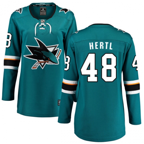 Home>NHL>San Jose Sharks>Tomas Hertl>Women's San Jose Sharks #48 Tomas Hertl Fanatics Branded Teal Green Home Breakaway NHL Jersey