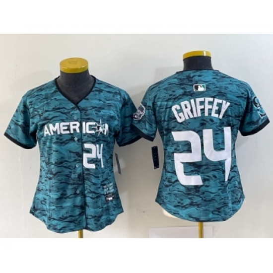 Women's Seattle Mariners #24 Ken Griffey Number Teal 2023 All Star Cool Base Stitched Jersey